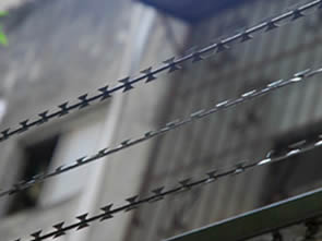 Straight line razor wire is made of blade type barbed wire straightened for easy and quick installation.